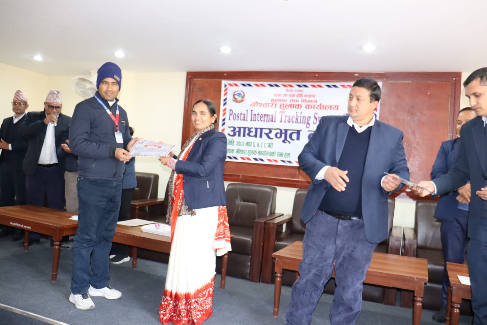 मिति २०८२/१०/०६ गते देखि संचालन भएको ३ दिने Postal Internal Tracking System(PITS) सम्बन्धि आधारभूत तालिमको समापन सत्रको क्रममा लिईएका केही तस्बिरहरु